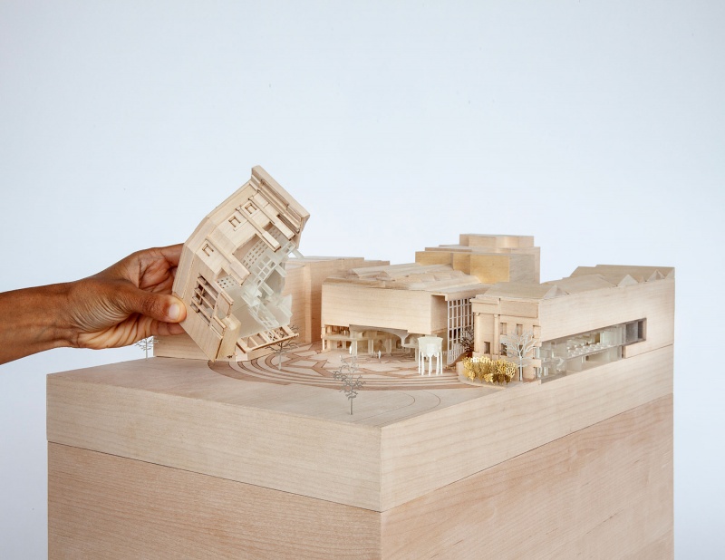 Sectional model reveals the oval hall and research centre