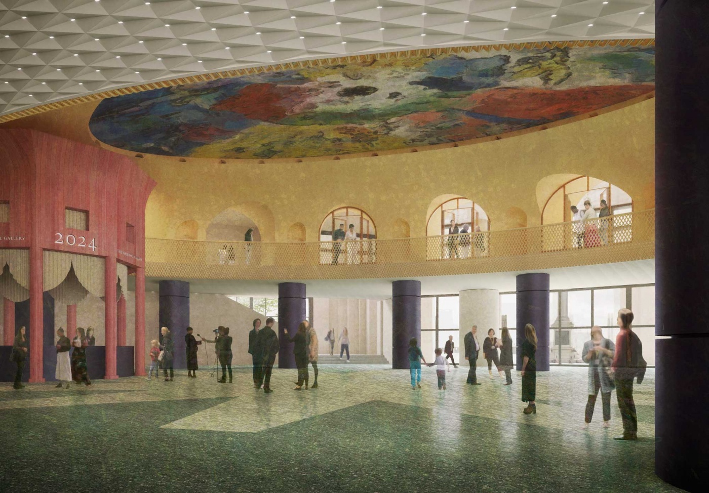 View of proposed oval arrival hall in the Sainsbury Wing