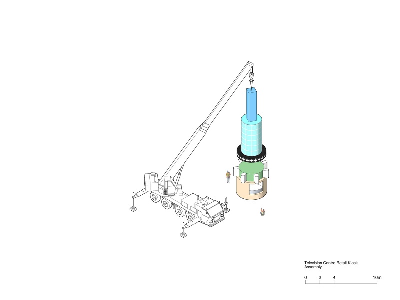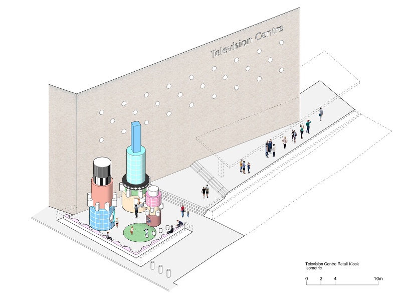 Competition proposal for a kiosk to mark the entrance to the BBC Television Centre re-development in White City.