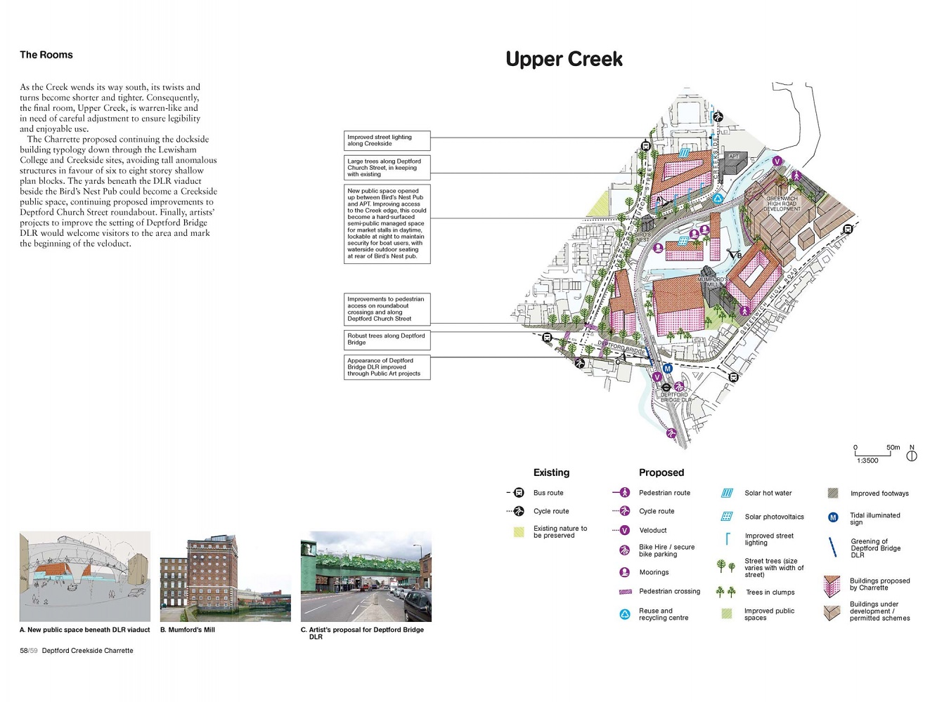 Deptford Creekside is an area in south-east London that is in the process of changing. Surrounding the Creek are 57 separate freeholds each in various stages of development. Whilst several planning frameworks have been proposed over the last ten years, the area still lacks a coherent vision for how it might benefit from its unique characteristics in the years to come. David Kohn was part of a consultant team appointed by Creative Process and Design for London to consult local stakeholders and develop tools for steering the future development of the area. A book of the results of the Charrette was published in February 2009.