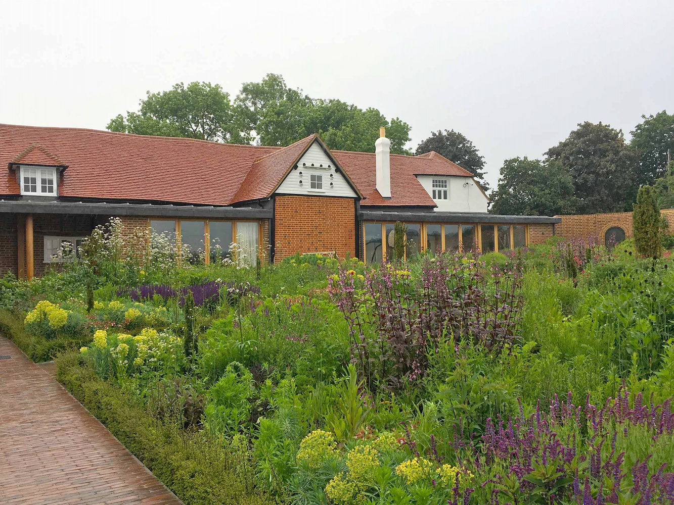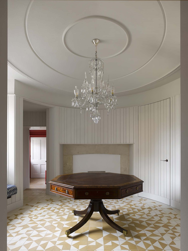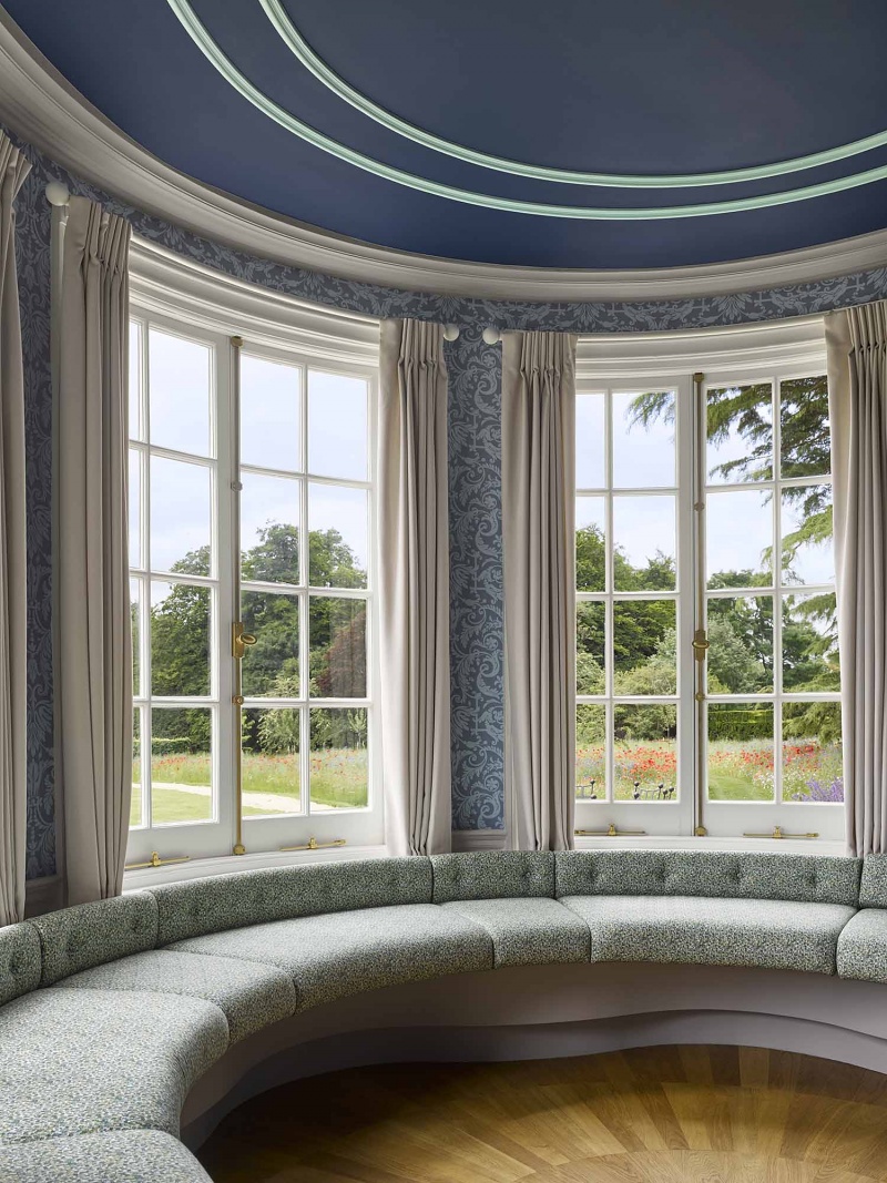 New gardens by landscape architect Todd Longstaffe-Gowan create a series of outdoor rooms surrounding the house that include kitchen garden, hawthorn maze and an extensive haha. Livestock were reintroduced to nearby fields and trees planted to create new framed views of a revitalised farming landscape.