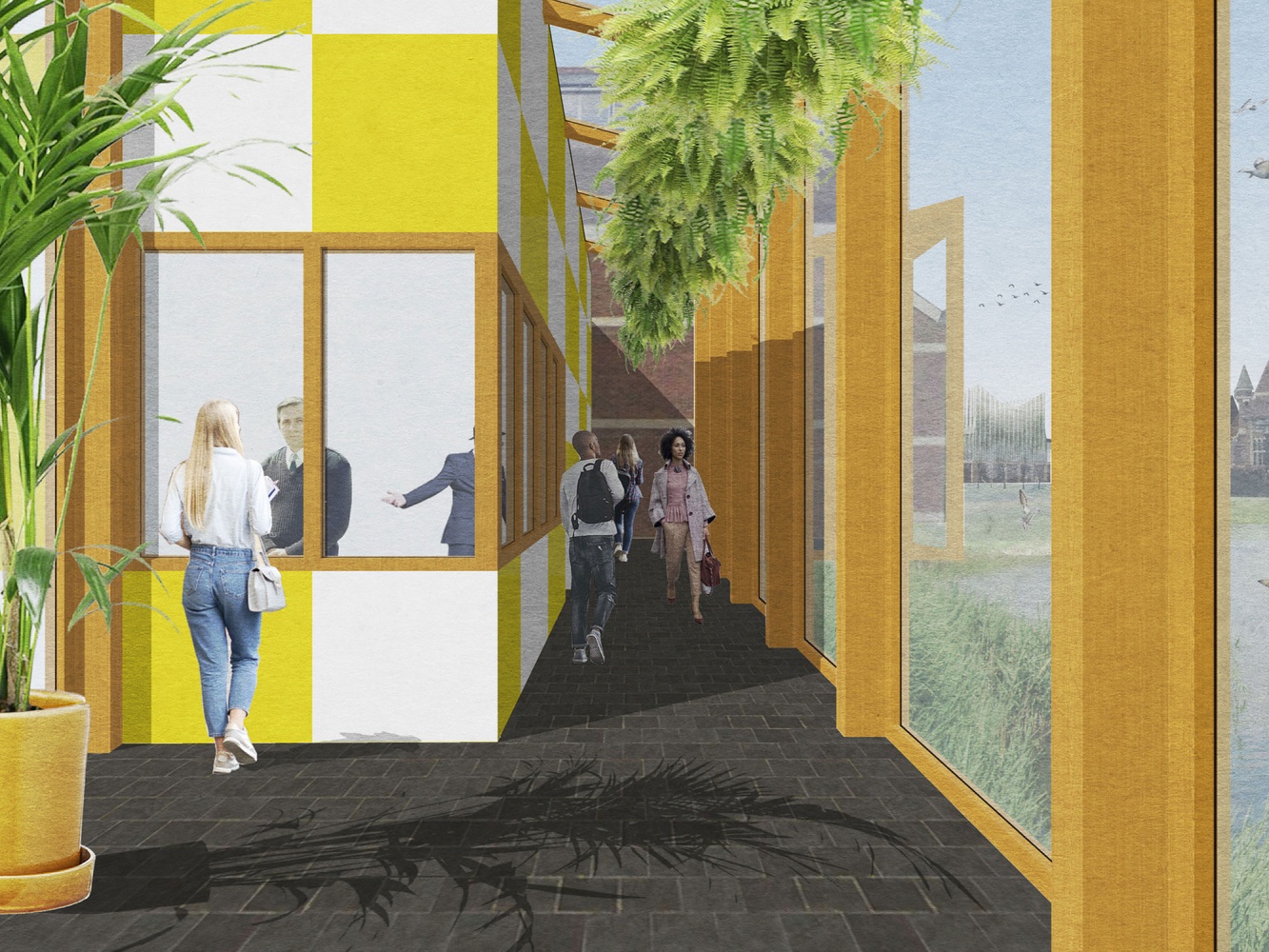 Our proposal strove to respect the campus’ Gothic Revival and Arts and Crafts legacy while being emphatically contemporary. By utilizing low embodied carbon materials and innovative technologies, our building not only minimizes environmental impact but also serves as an energy hub, offsetting carbon emissions and harnessing solar energy for a net carbon-negative impact.