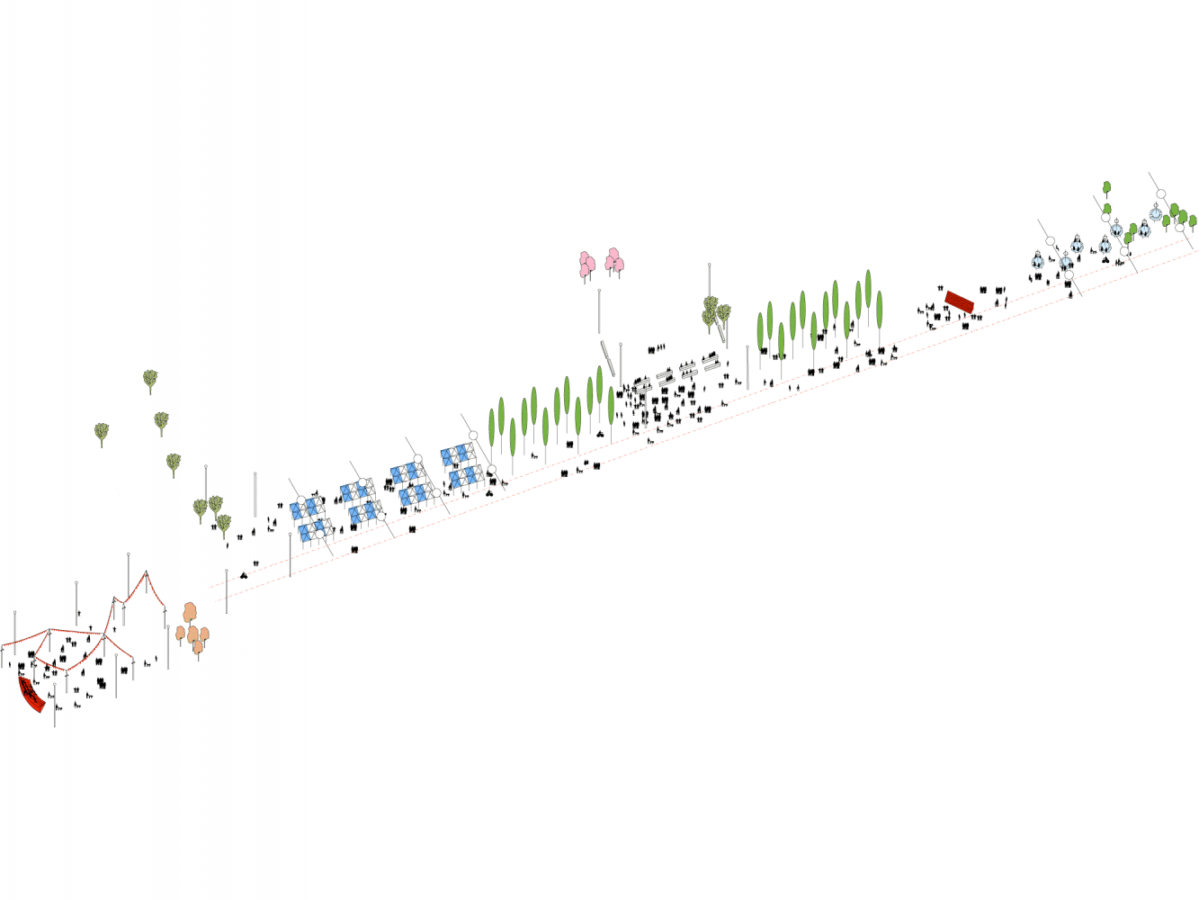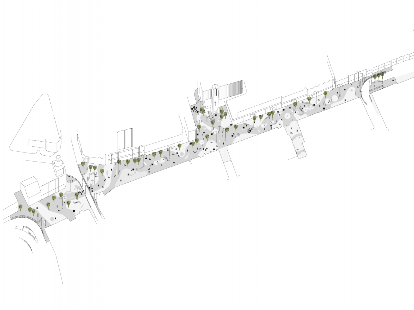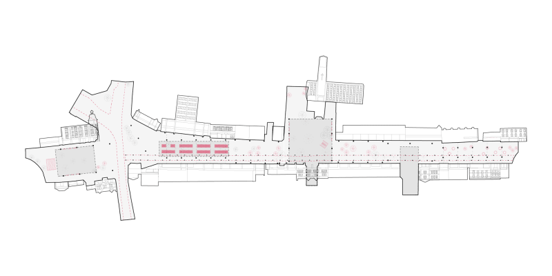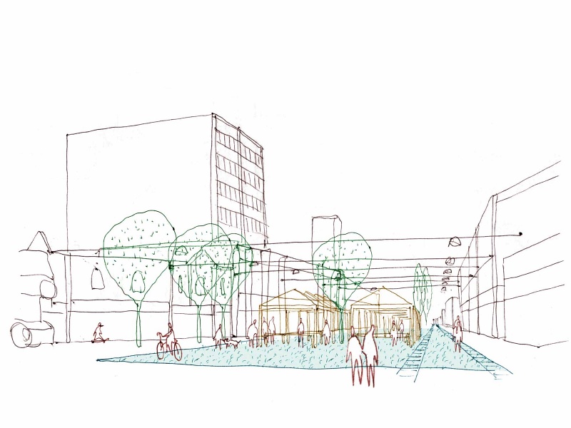 The aim is to create a place to be proud of, providing a focus for community uses, socialising and events through the creation of new public spaces. Design strategies include an events-based street with a sequence of ‘rooms’ hosting different uses, de-cluttering, improving legibility, clustering furniture, installing lighting and planting specific to each space.