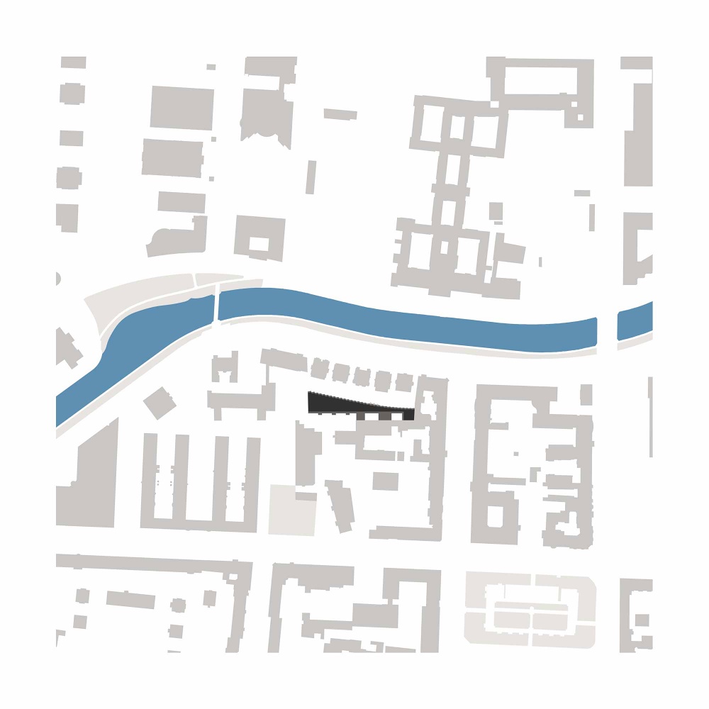 The site is located adjacent to the Landwehr Canal, in the western end of the Mitte district. Our scheme seeks to make the most of the site, its narrow approach and long proportion, and the fact of it being sandwiched between buildings of significant architectural heritage.