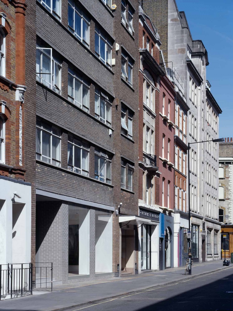 Eastcastle Street, with its generous ground floor showrooms and proximity to Oxford Street’s shops, was once the centre of London’s rag trade. In the last few years the area has undergone a shift in identity with the departure of clothing manufacturers to the Far East, and the arrival of several East End art galleries.