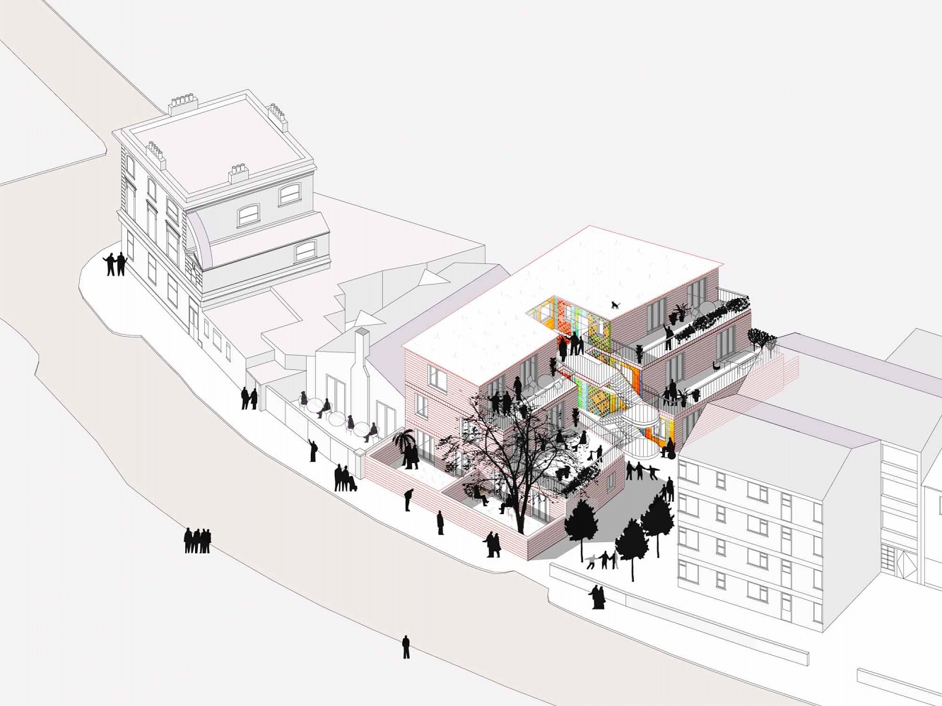 David Kohn Architects was shortlisted amongst several hundred architecture practices to design schemes for the London housing charity Peabody. The final scheme was highly commended and the Peabody design director praised David Kohn Architects for “not only an original design solution, but showing a genuine focus on the client, the neighbourhood and local residents at interview.”