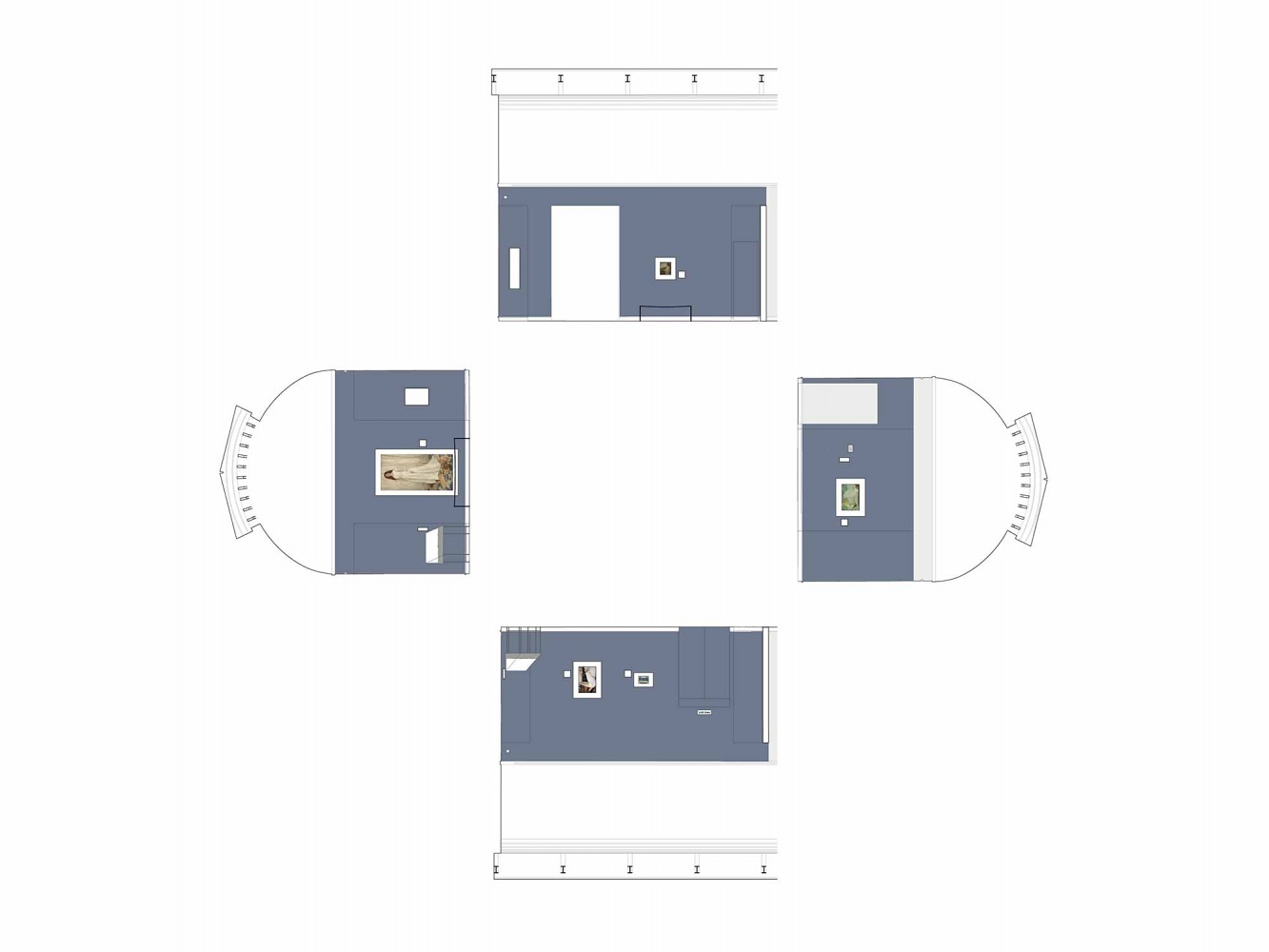 The most significant intervention is reserved for the North Western gallery: a new room is created, with chamfered corners creating an intimate, chapel like interior. The most renowned paintings of Hifferman, most notably ‘Symphony in White, No. 1’ are arranged carefully inside this space.