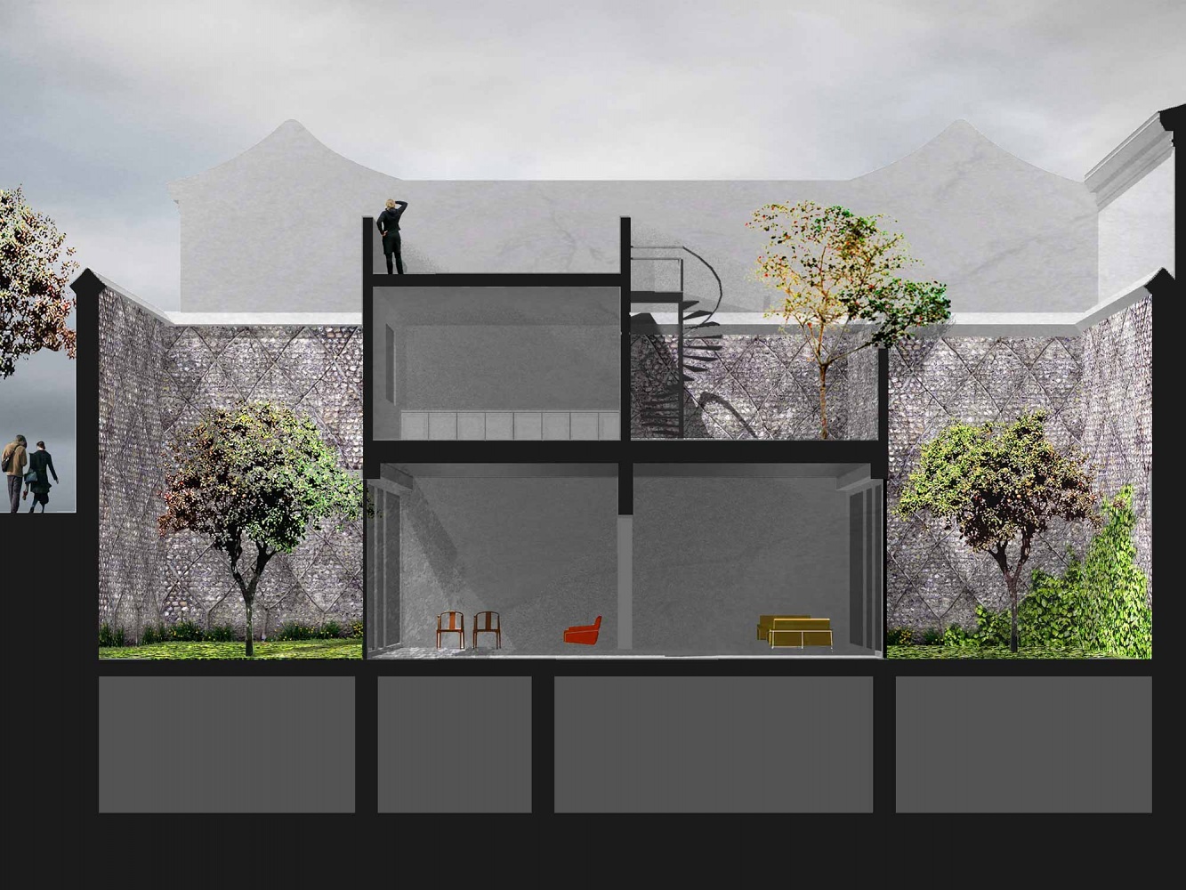 Proposal for the remodelling of a traditional courtyard house by the east entrance of the Forbidden City in Beijing. We explored the potential of introducing light into the existing basement and in so doing creating seven courtyards. A processional route from the car park in the lower basement to the central courtyard was created that passes through a series of halls of differing geometries.