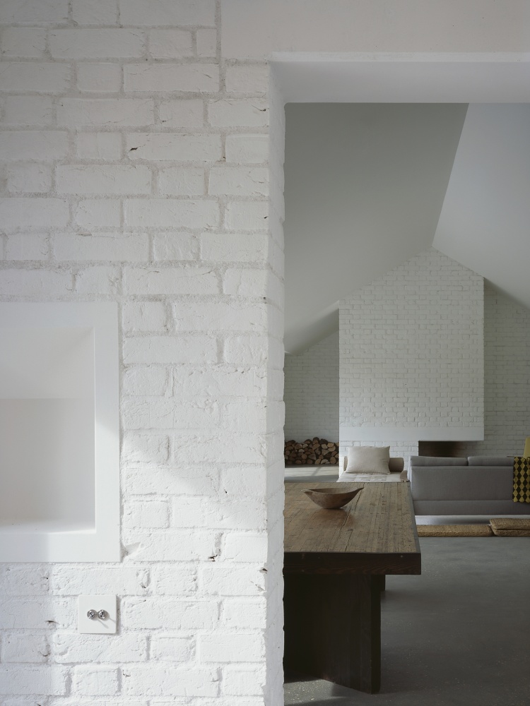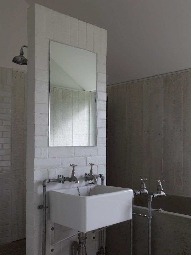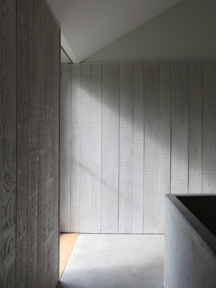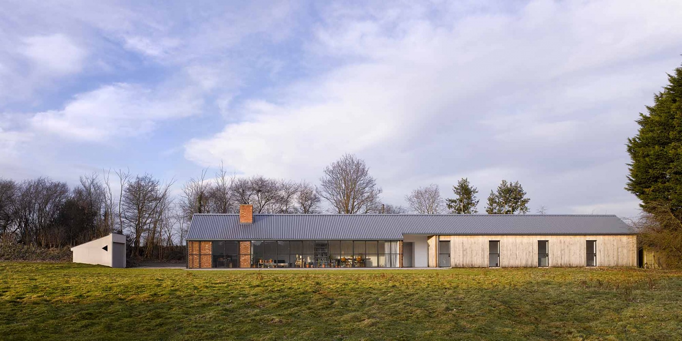 Built on the footprint of a nineteenth century stable block, the building retains its long narrow plan and is divided equally into living and sleeping quarters, each room in the house opening directly onto the south-facing garden and views across the landscape.