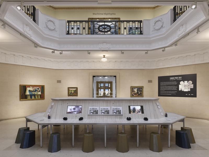 The Ferens Art Gallery is a Grade 2 listed Neoclassical landmark building opened in 1927 and funded by local industrialist and MP Thomas Ferens. The original building comprised a central axis of arrival hall and octagonal Central Court surrounded by a ring of seven handsome top-lit galleries. The gallery’s impressive permanent collection is housed in the original building which was more than doubled in size in the 1990s to provide temporary exhibitions spaces, education facilities, and a café. A key early decision taken by the curators was that the Turner Prize exhibition should not be confined to the peripheral temporary exhibition spaces but become central to a visitor’s experience the Ferens. This required the temporary removal of some of the permanent collection to make way for a new organization of the plan and sequencing of spaces.