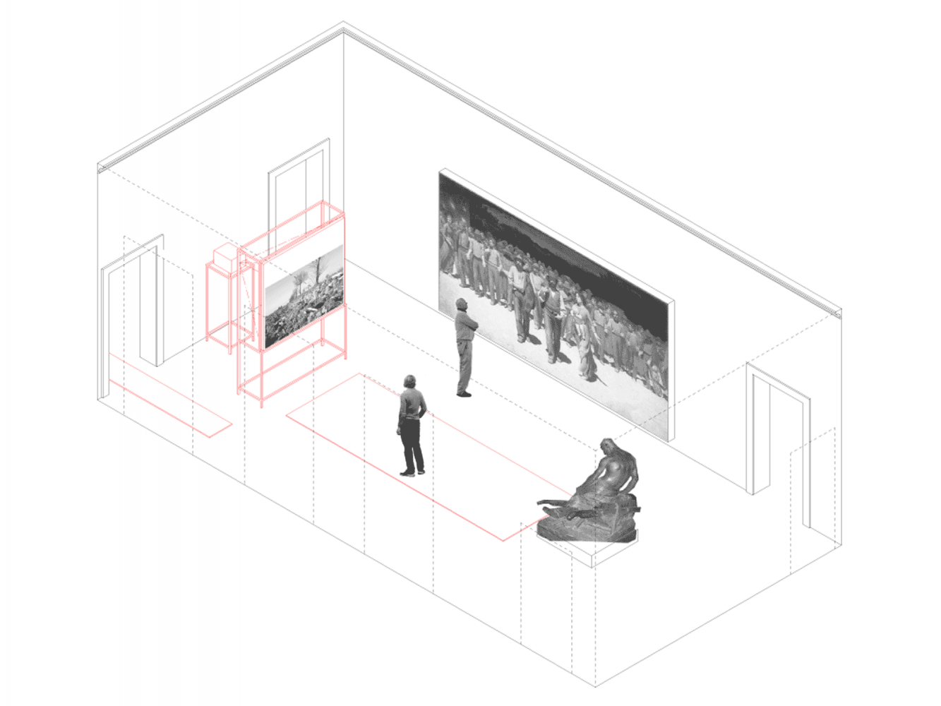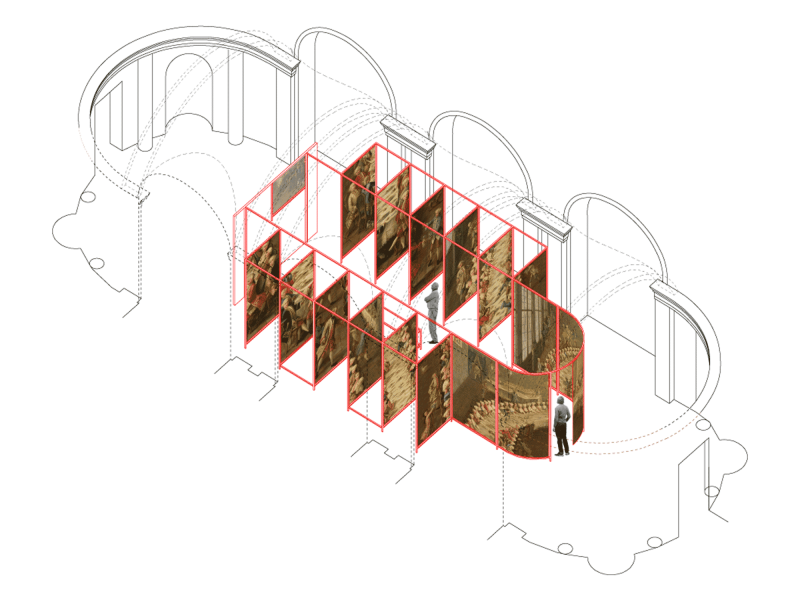 The setting for the exhibition is the Villa Reale, an imposing nineteenth-century mansion commissioned by the Belgiojoso family and later occupied by Napoleon. Today the Villa houses the City of Milan's collection of nineteenth-century art which was a key aspect of the design brief: the permanent collection was to be accessible at all times during the temporary exhibition and no substantial alterations to the galleries' integrity was permitted.