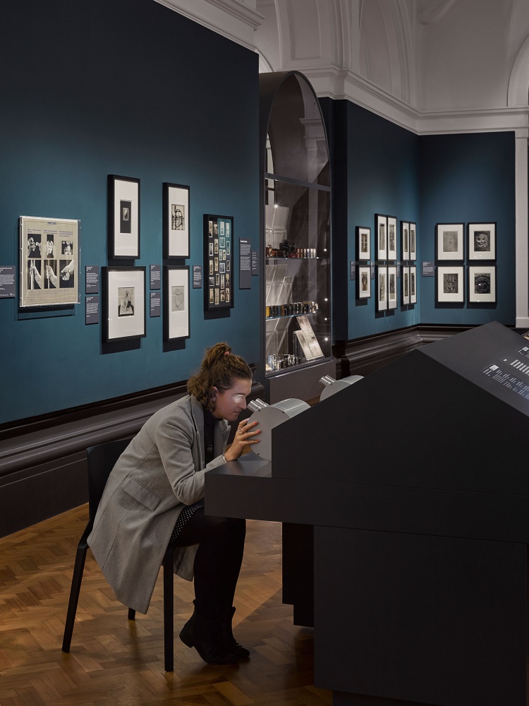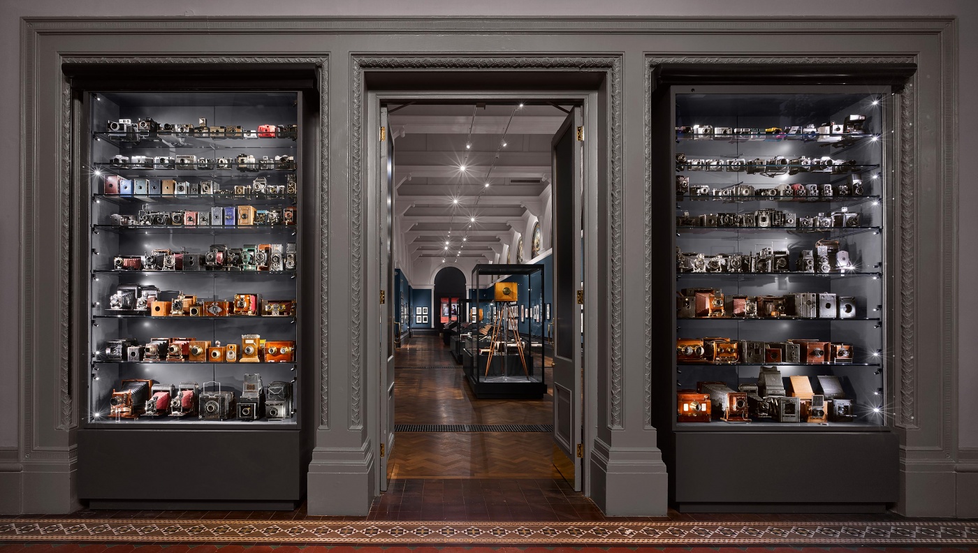 David Kohn Architect’s design offers a clear departure from static exhibition display: a specially-designed handling table means visitors can encounter cameras up close, while other interactive elements include a bespoke case incorporating four stereoscopic viewers where visitors can experience this early form of photographic image. As well as displays exploring photography’s rich history, a digital wall showing the most cutting-edge photographic imagery invites speculation on the medium’s future.