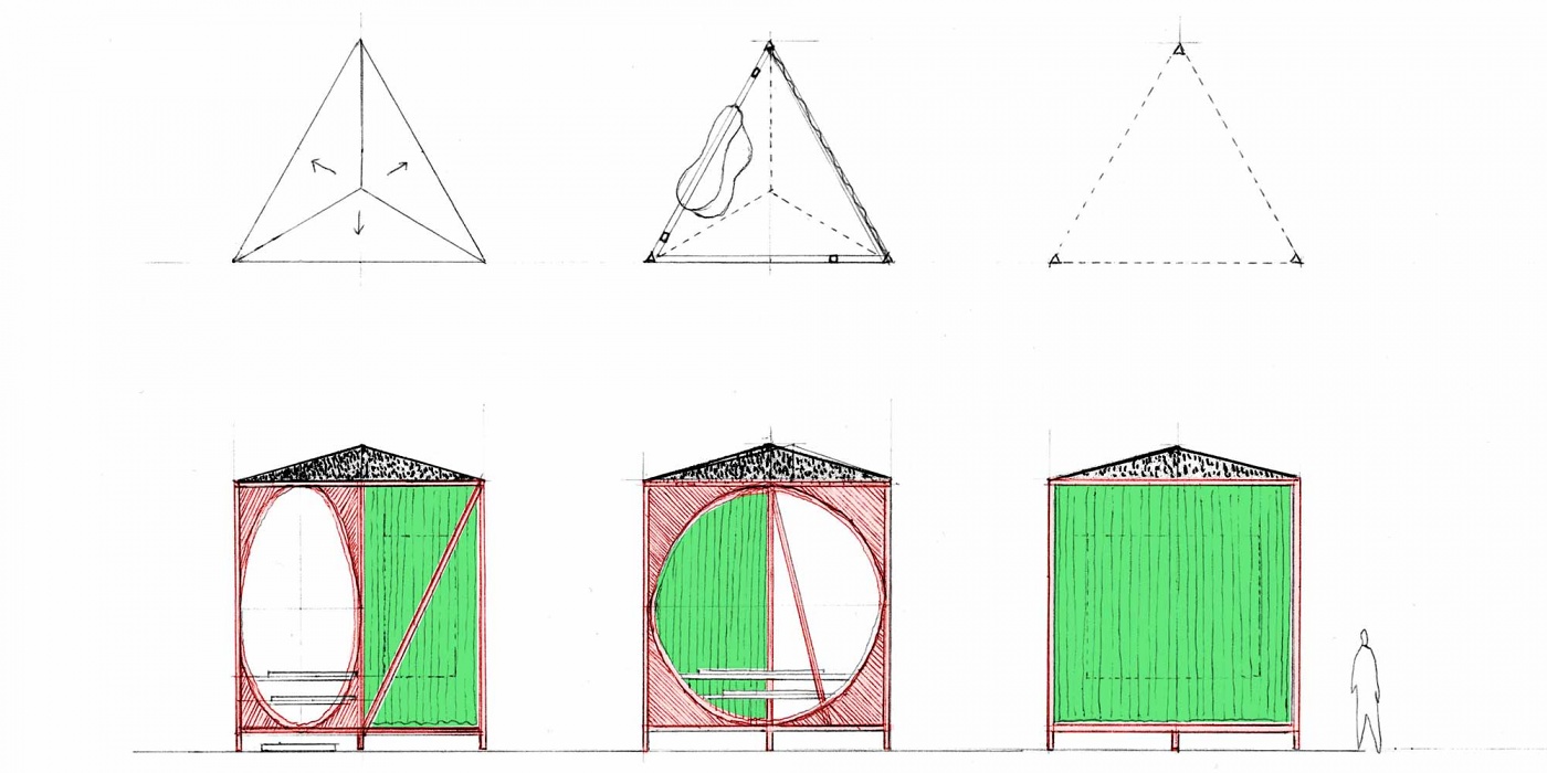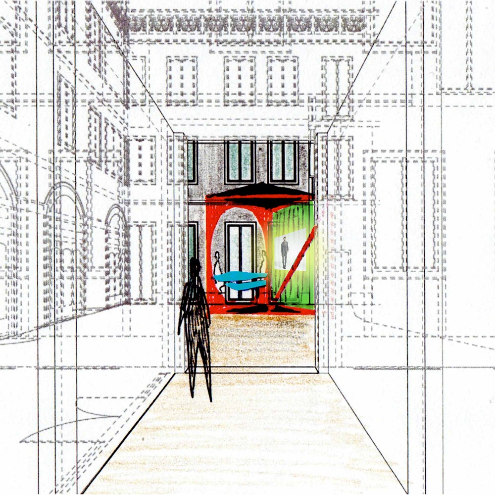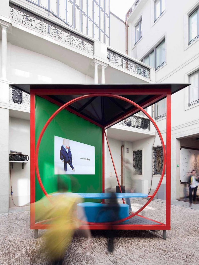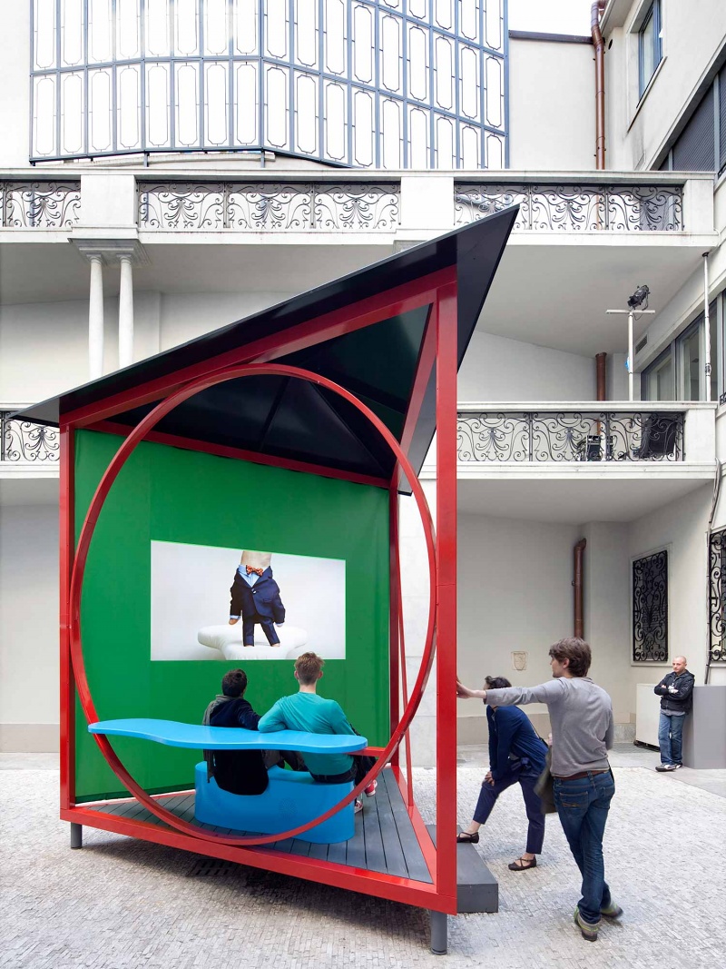 Following the collaboration with Porro for the Handmade 2011 exhibition, Wallpaper* commissioned David Kohn Architects to design the centrepiece pavilion for its 2012 show. The brief was to present a specially commissioned animation by Dutch artists Lernert and Sander in the courtyard of the Palazzo Brioni, Via GesĂș. The idea of the pavilion was to frame both the film and the pale architecture of the palazzo in a small theatre space. The triangular form ensured that, as visitors walked through the courtyard, the pavilion gathered together a changing kaleidoscope of the Brioni animation, its audience and the palazzo.