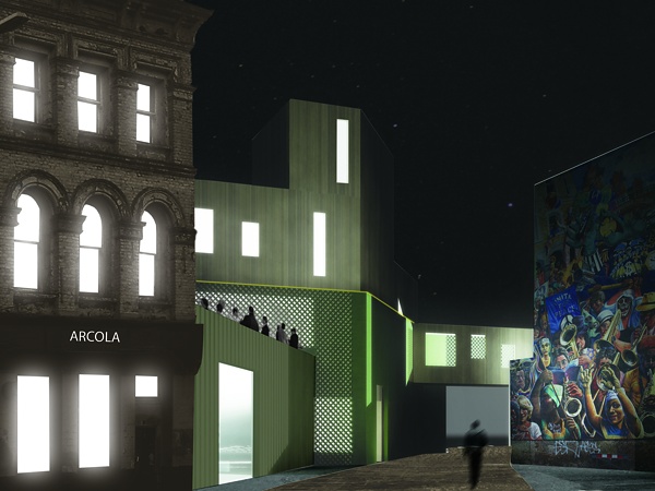 These questions are exemplified by the plight of the Arcola Theatre. The Arcola grew out of a local Turkish theatre project started in 2000 and is housed in a 19th century warehouse on a backstreet some distance from the transport and social centre of Dalston. Its modest beginnings were matched by its setting and its theatre spaces were no more than warehouse floors. Columns regularly appear on stage, there is no room for flying sets yet the theatre is widely regarded as one of the most exciting venues in London. Nonetheless, like other local institutions, the Arcola is now under pressure to relocate due to the future value of its warehouse as housing. Given the success of the theatre and its importance locally, the new sites being considered are in a much more prominent location than Arcola Street — across the road from the new Dalston Square.